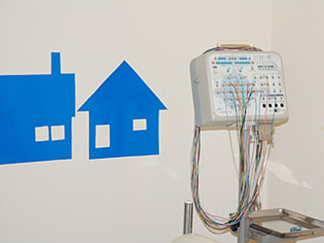 心電図検査・脳波検査・エコー検査(超音波診断)などをおこないます。エコー検査は体内のあらゆる部位を非侵襲的に調べることができます。療育園では、主に心臓の精密動態を調べるのに多く用いられています。