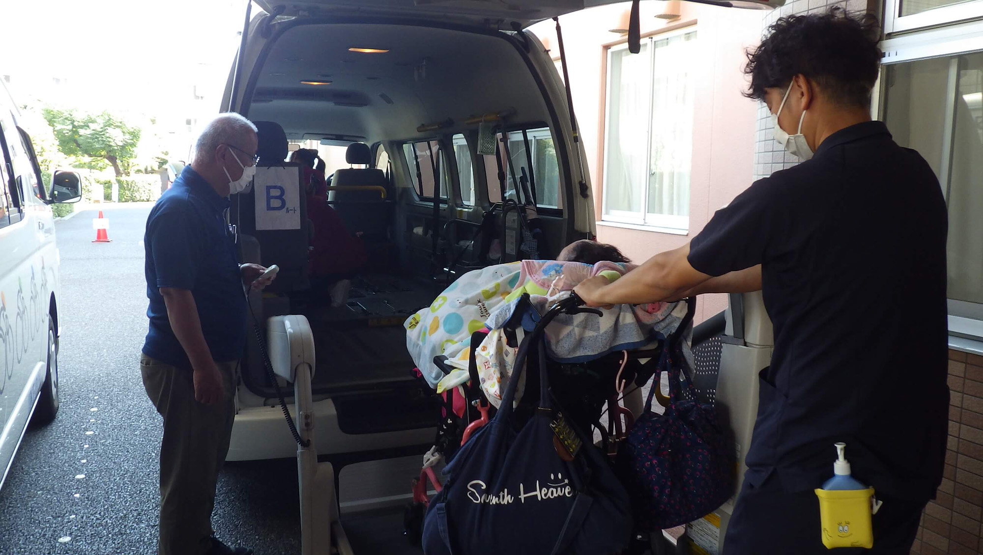 送迎車でご自宅まで送り迎えします。